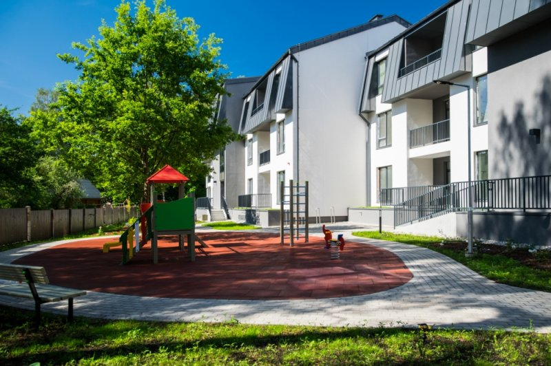 The modern 3-storey club house "BITERA 6" is located in the heart of Imanta, in a quiet and green area, next to Anniņmuiža Park. The building has 20 apartments ranging from 60 m² to 145 m² with 2 or 3 bedrooms, a terrace or loggia. An underground car park is included in the price of the apartment. There is a children's playground in the private enclosed backyard area.